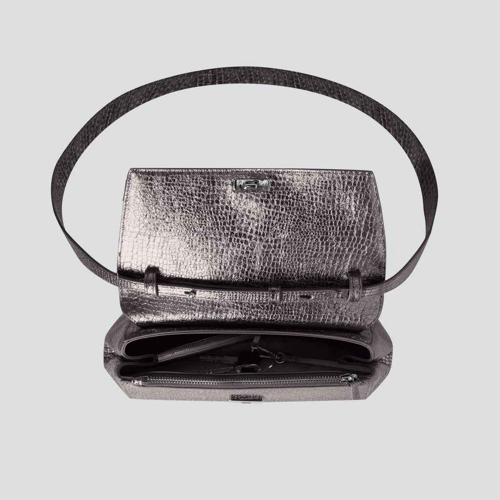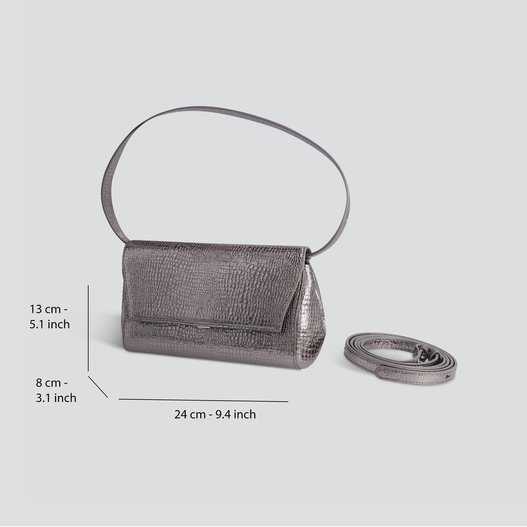 Ikon Clutch - mini croco gris acier