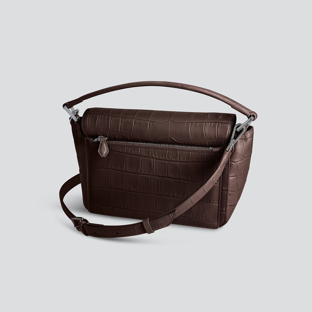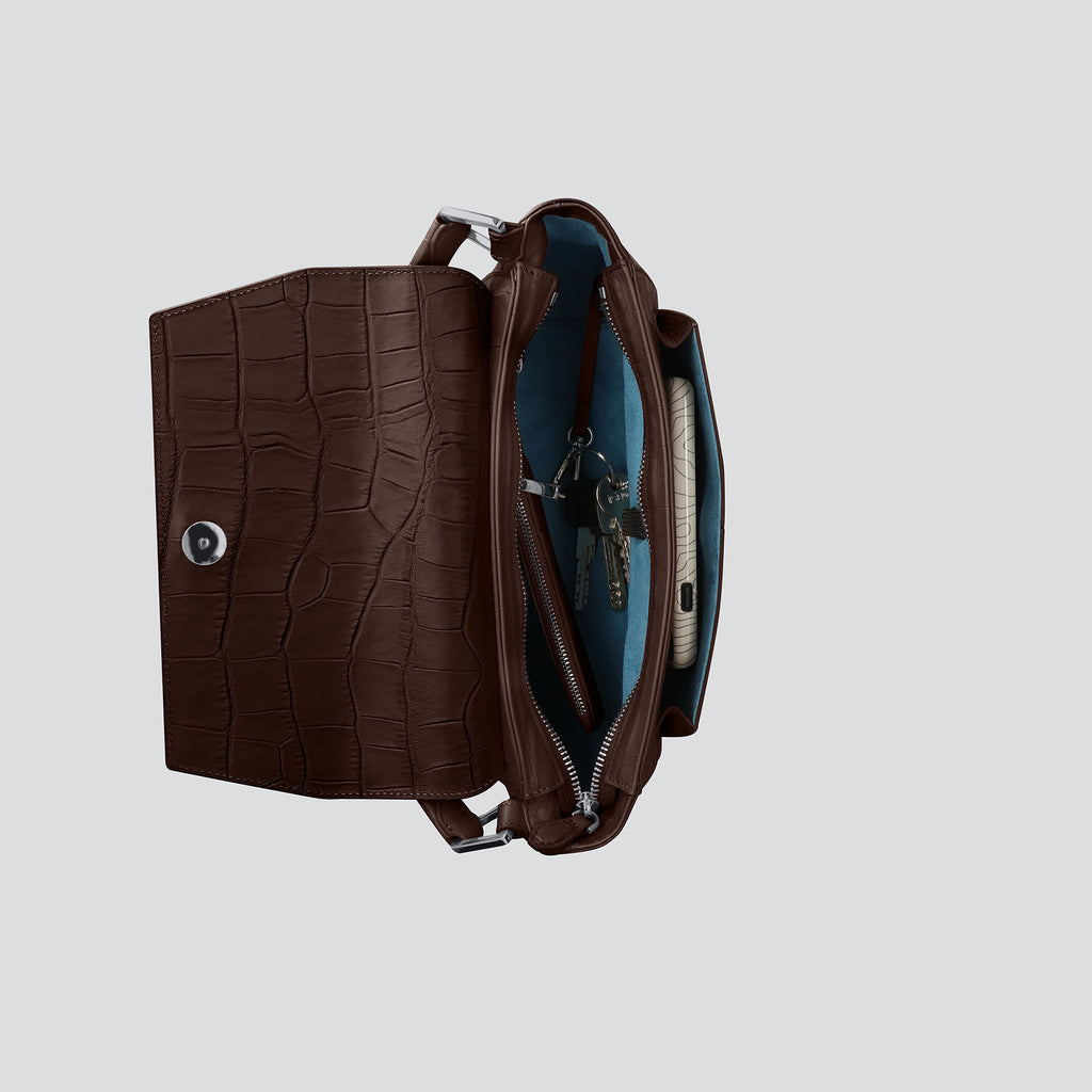 - Fait en cuir de veau 100 % italien avec un relief imprimé croco et une finition matte, qui nécessite un traitement avec un produit d'entretien transparent pour le cuir.