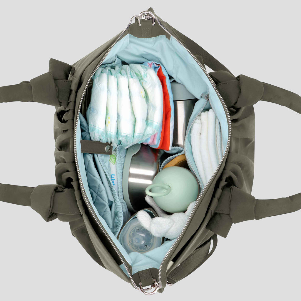 • Les poches spacieuses peuvent accueillir des couches, des lingettes, des vêtements de rechange et bien plus encore.