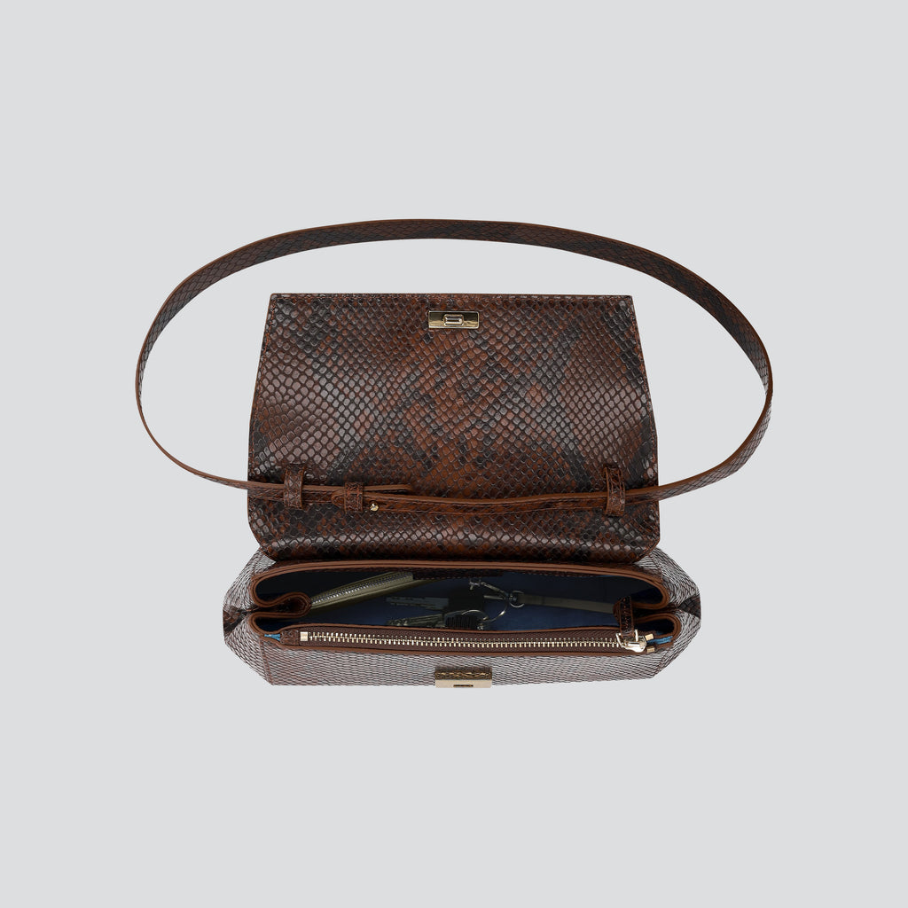 Ikon Clutch - python donkerbruin