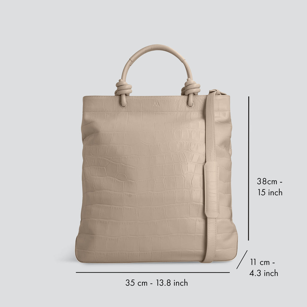 Alle leren KAAI-tassen zijn gemaakt van 100% leer afkomstig van een enkele leerlooierij in Italië. Deze leerlooierij maakt gebruik van gepatenteerde technologie om hun leer krasbestendig, waterdicht en UV-bestendig te maken, zodat je KAAI-tas er jarenlang uit zal zien als op de dag dat je hem uitpakte.